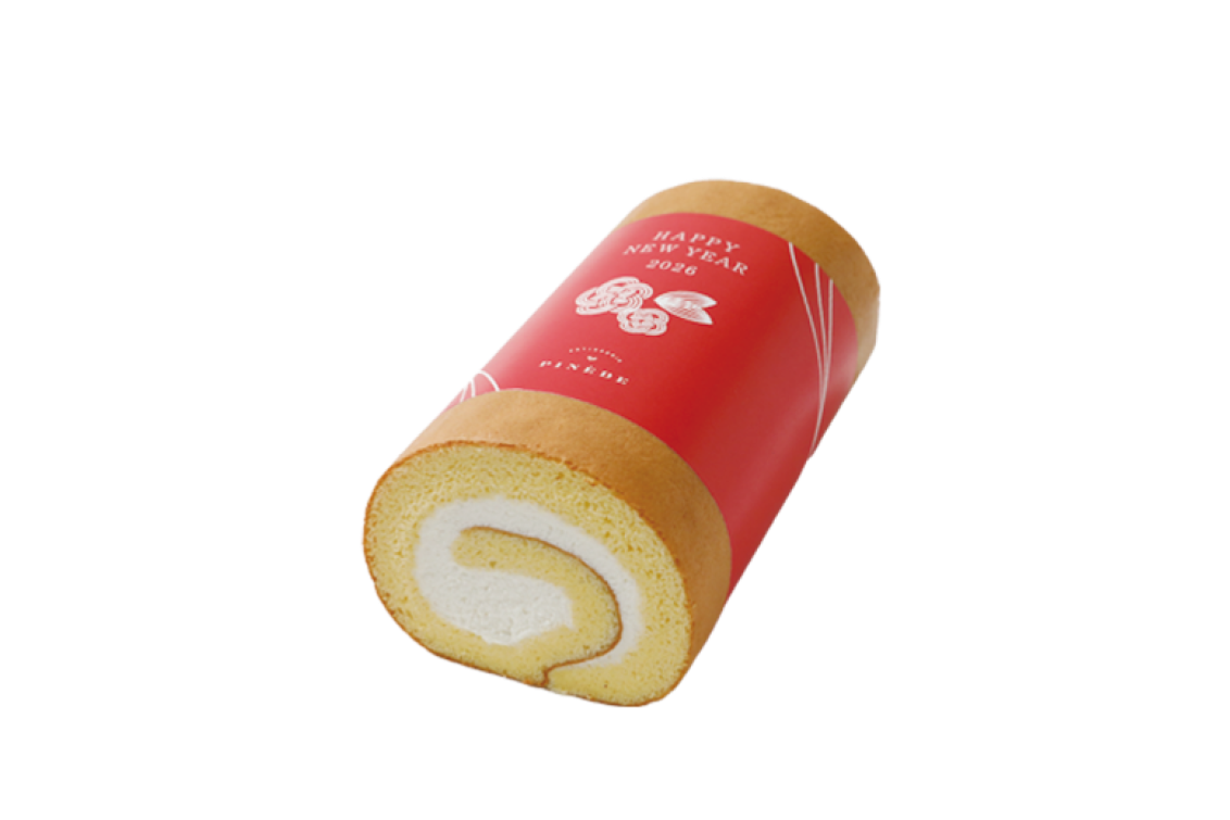優しい甘さのホイップクリームをふわっと軽やかなスポンジで巻き上げた自慢の『ピネードロール』に、お年玉券が付いた巻紙を巻いて新年の装いに仕上げました。