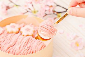 『さくらのプチモンブラン』は、満開の桜を思わせるようなビジュアルで、お花見やピクニックの差し入れにはもちろん、新たな門出を迎える方へのお祝いのギフトとしてもおすすめ。